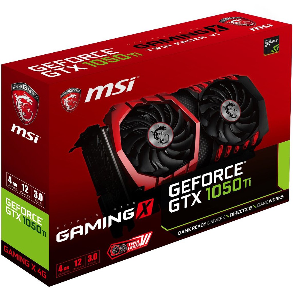 Msi geforce gtx 1050 ti gaming x 4g 4 gb gddr5. Get game ready with geforce gtx. Compare top cheapest msi geforce gtx 1050 ti gaming x 4g price in singapore check specifications new used price list at iprice. 1493 mhz 1379 mhz mode gaming.