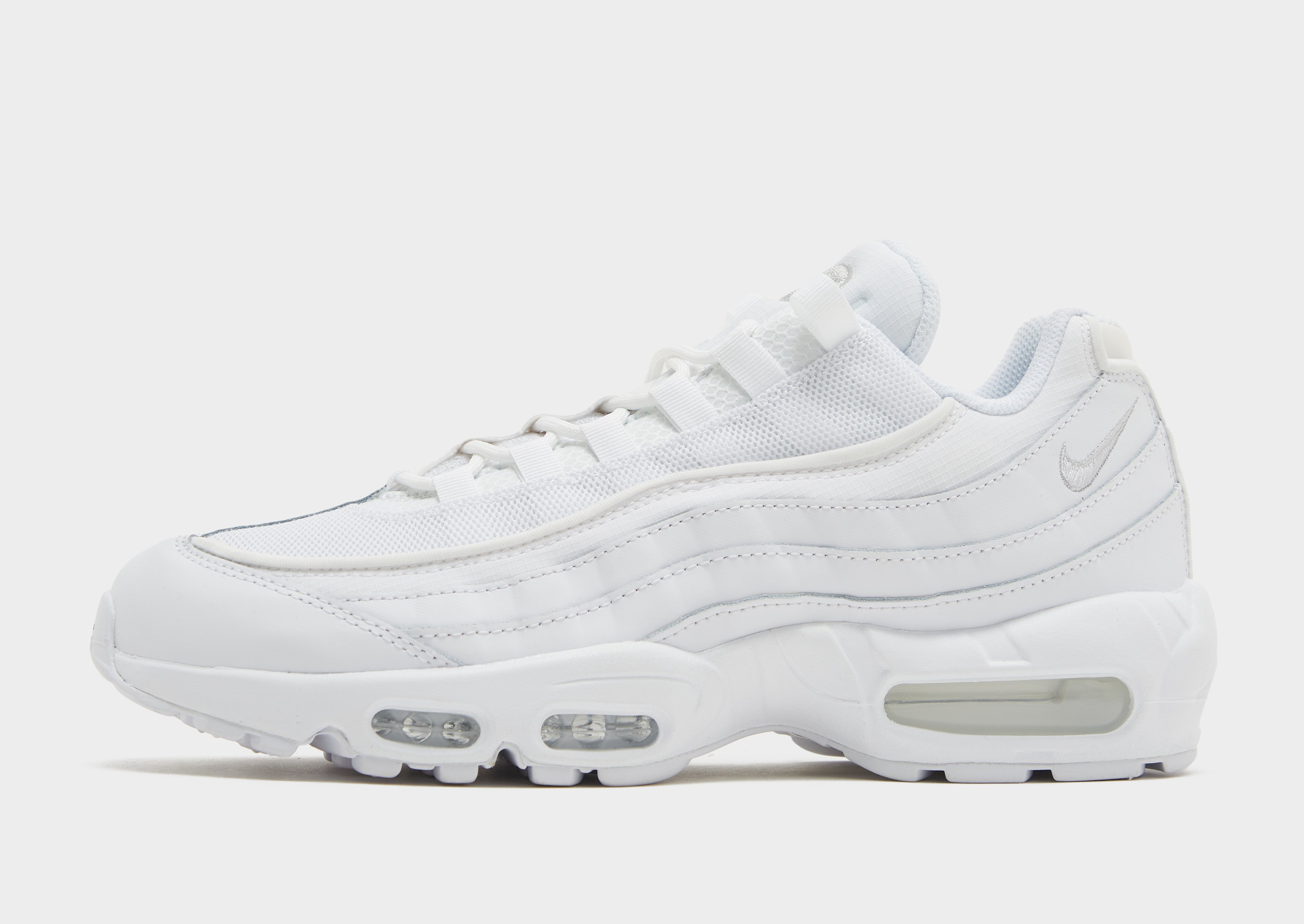 Nike air max 95 white. Nike designer sergio lozano sought to change this. All jokes aside this unique air max 95 carries a what the air max vibe with various shades of camo running across the side panels of the shoe. He did just that using his four years of knowledge in designing nike tennis training and acg and thus the air max 95 was born. Shop online for nike air max 95 in white with jd sports singapore s leading sports fashion retailer.