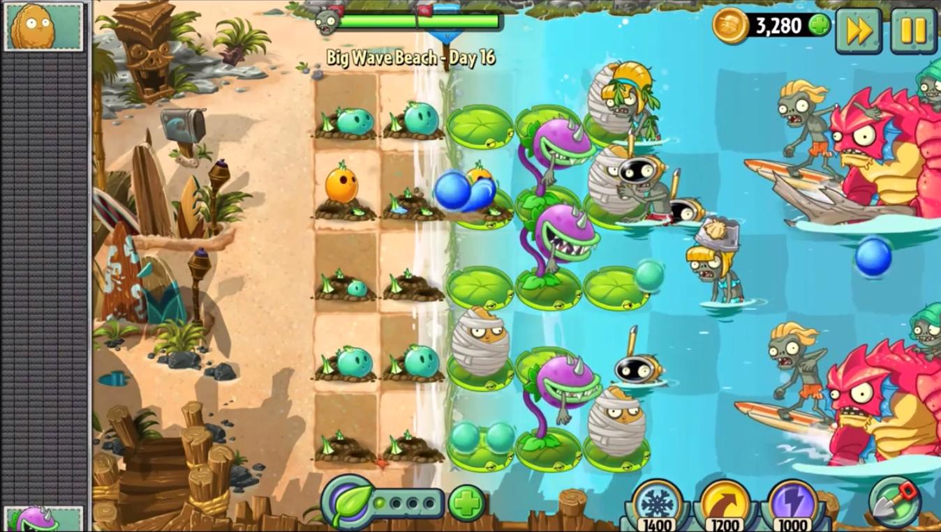 When this level is finished for the first time the player receives a note. Download plants vs zombies 2 big wave beach part 2 http goo gl rkunuj join the community. This is the first of a new set of levels based on a beachfront location. Zombies 2 released in the 2 9 1 update of the game bringing new zombies and aquatic plants with the return of lily pad tangle kelp and snorkel zombie from the first game.