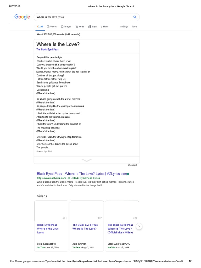 The black eyed peas where is the love lyrics meaning. Watch official video print or download text in pdf. The lyrics deal with the general theme of humanity and how society has forgotten the value of loving one another and living in harmony the meaning of where is the love by the black eyed peas by analysing the lyrics it becomes evident what the meaning behind the song is. The song where is the love by the black eyed peas has a number of meanings. Joe from chicago ar i love this song and the black eyed peas aren t rap their hip hop rap is eminem and 50 cent hip hop is stuff like black eyed peas.