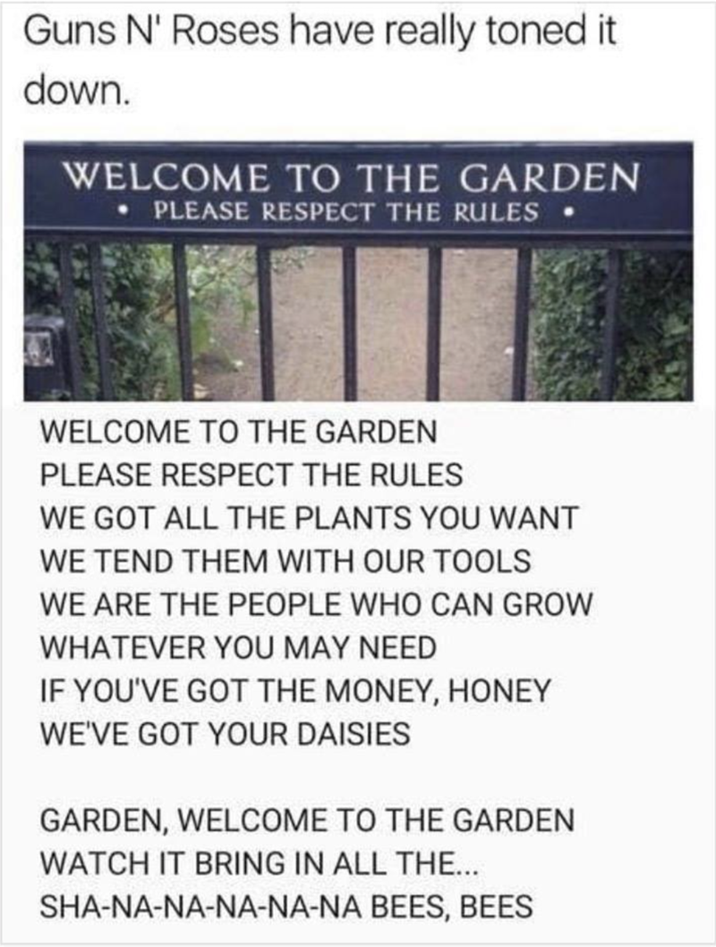 Welcome to the jungle guns n roses meme. According to slash axl refused unless he could re record it with the current members of guns n roses meaning slash and the rest of the appetite for. Welcome to the jungle we got fun and games we got everything you want honey we know the names we are the. Alexa intruder alert e play welcome to the jungle by guns n roses 6 turn off all lights º release claymore roomba popular memes on the site ifunny co. To help heal those financial wounds here are 10 sometimes mean spirited guns n roses memes.